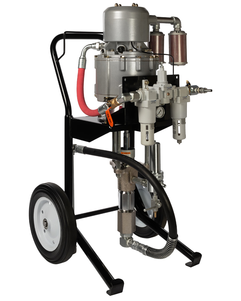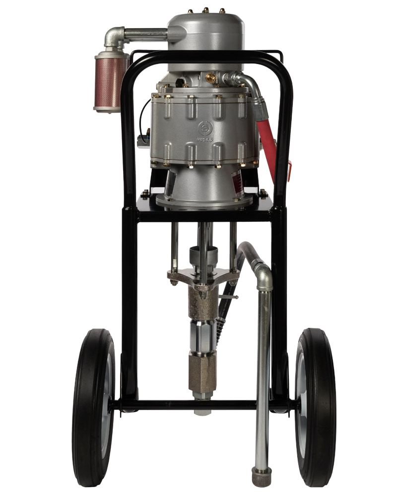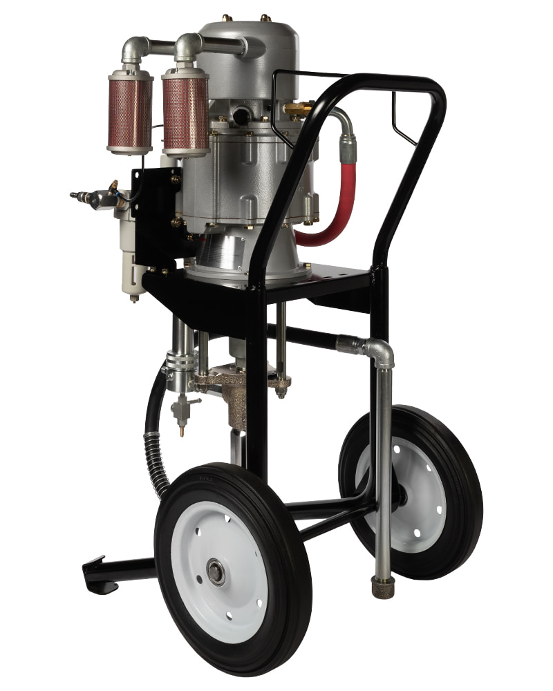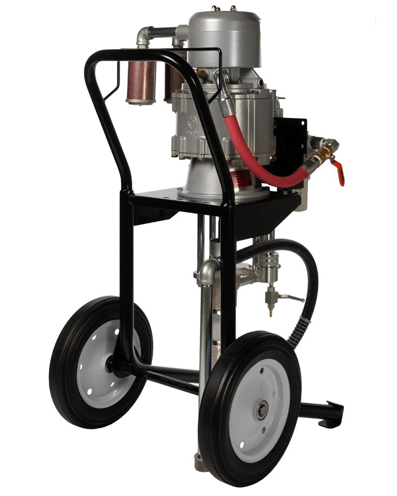 Окрасочная установка безвоздушного распыления для высоко-вязких АКЗ. Обладает максимально возможным давлением и невероятно высокой производительностью благодаря уникальному воздушному мотору способному работать до 120 циклов/мин. Относится к новой серии более мощных и простых в управлении пневматических аппаратов, способных распылять материалы, характеризующиеся крайне высоким содержанием твердых частиц. Этот аппарат предназначен для ежедневной интенсивной эксплуатации в тяжелых условиях.