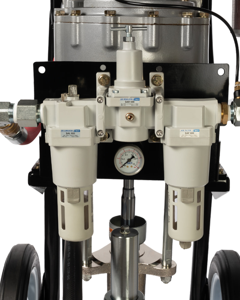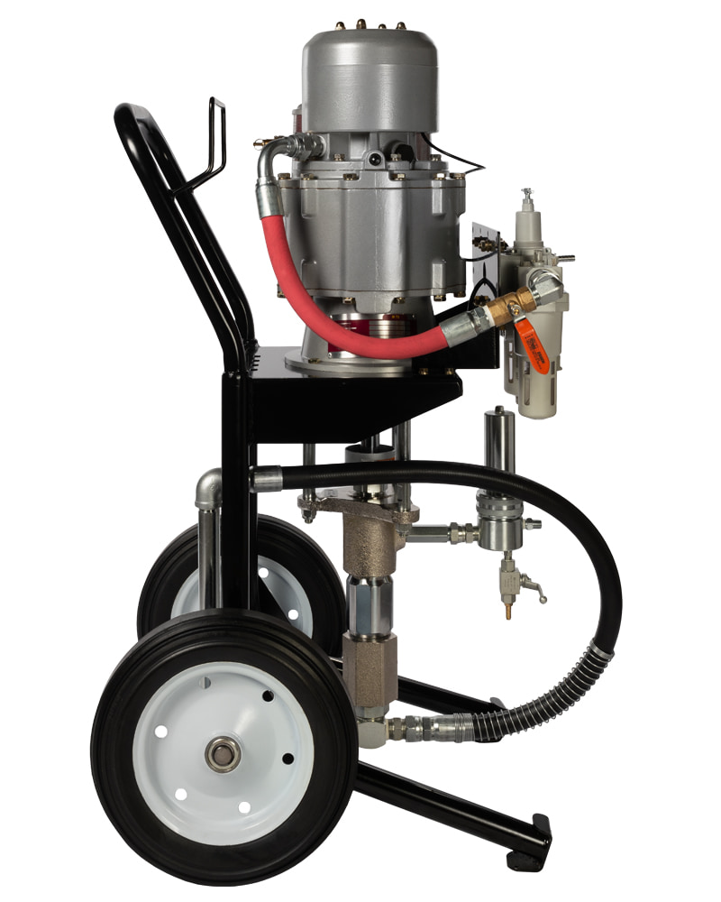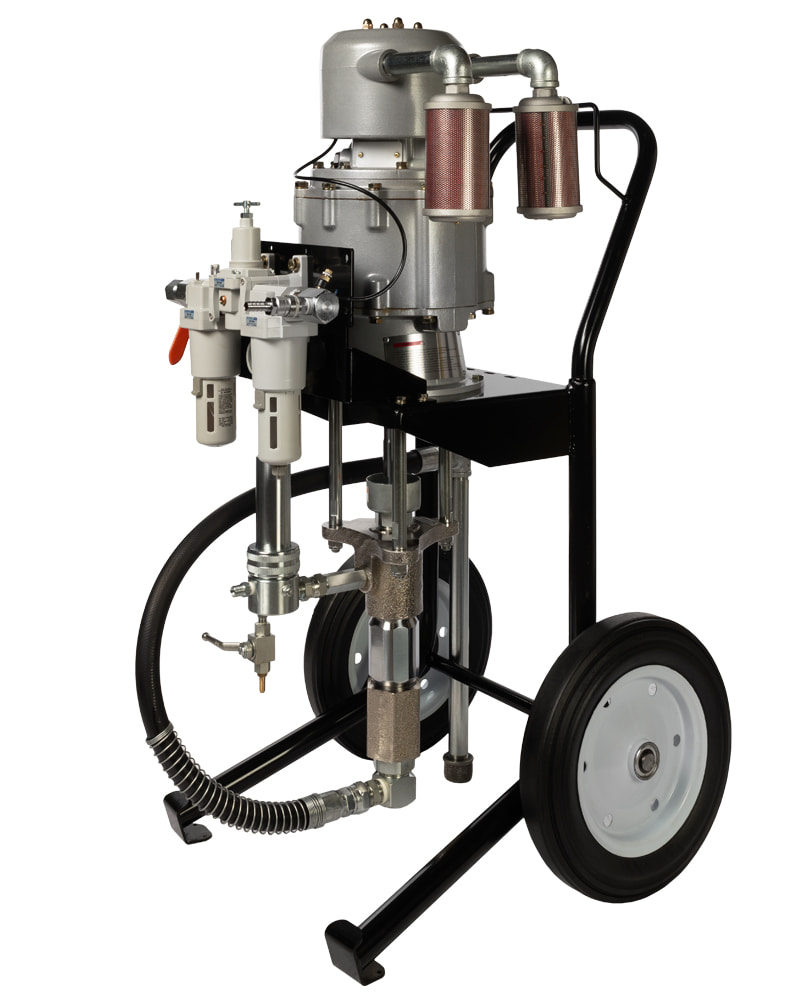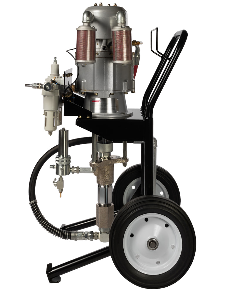 Окрасочная установка безвоздушного распыления для высоко-вязких АКЗ. Обладает максимально возможным давлением и невероятно высокой производительностью благодаря уникальному воздушному мотору способному работать до 120 циклов/мин. Относится к новой серии более мощных и простых в управлении пневматических аппаратов, способных распылять материалы, характеризующиеся крайне высоким содержанием твердых частиц. Этот аппарат предназначен для ежедневной интенсивной эксплуатации в тяжелых условиях.
